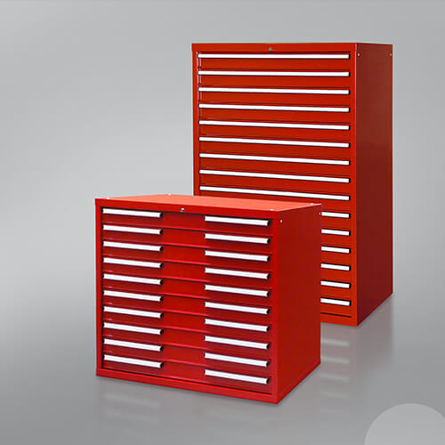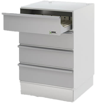Das VOGEL Schubladen-Regal-System kann problemlos an Ihre individuellen Raumbedingungenen angepasst werden (75er- oder 100er-Systeme).